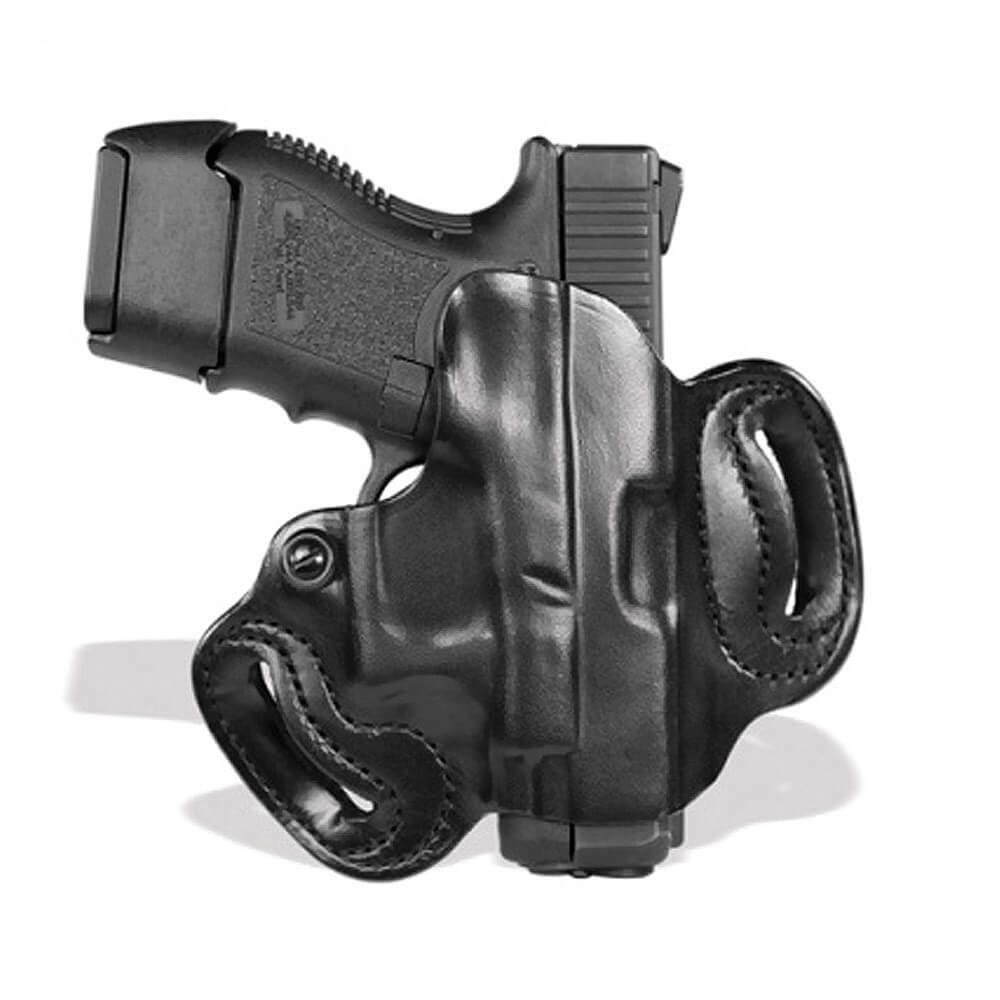 The Mini Slide Holster is a premium saddle leather, two-slot holster, and it's a great choice for your favorite pistol.
