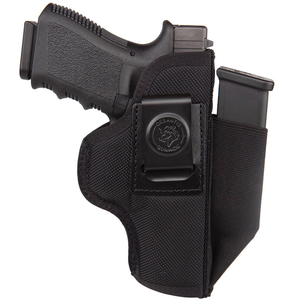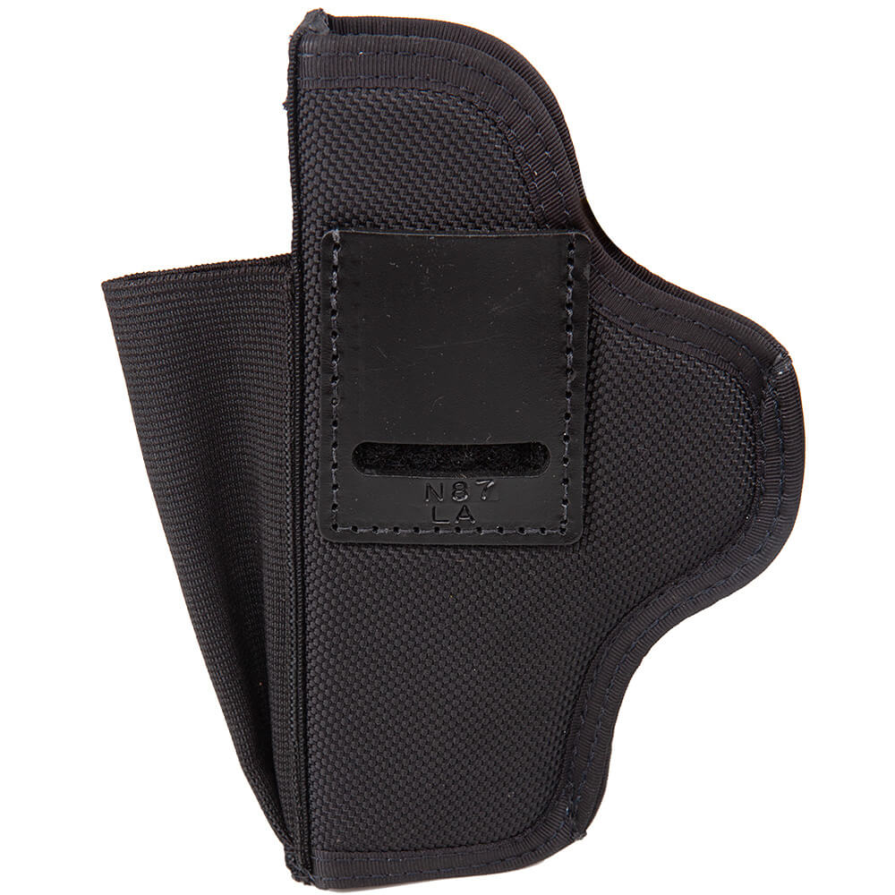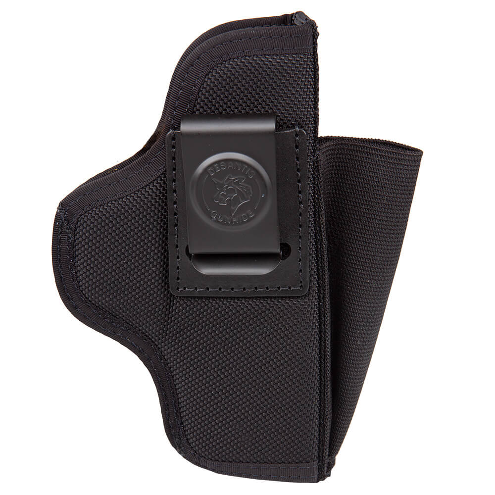 The Pro Stealth IWB holster is made of premium padded ballistic nylon. The 1" sturdy, powder coated black spring clip keeps this beauty securely anchored to your belt. A spare magazine pouch is standard for the autoloader models, and they are ambidextrous. Available for most concealed firearms. Made by DeSantis.